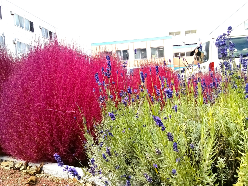そんな中、四季彩の邑では「コキア」が紅葉真っ盛り。