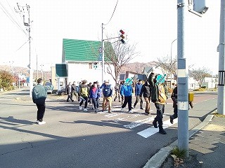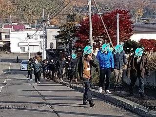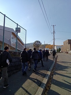 避難場所である「藤野中学校」までの1.7kmを徒歩で移動です。